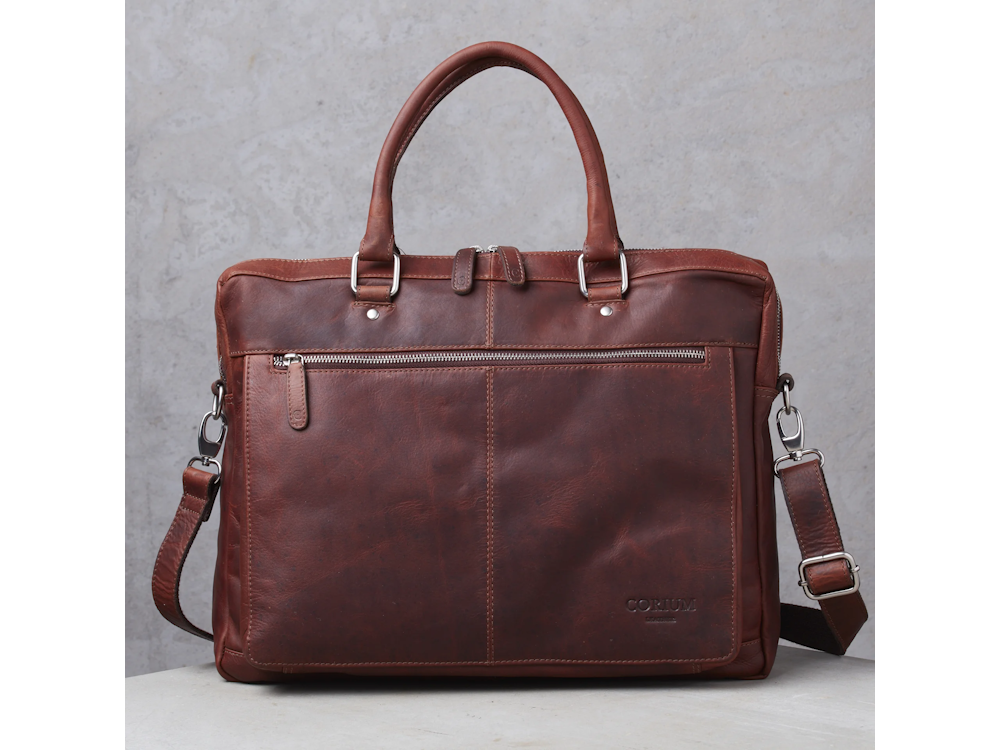 Corium 14" Wien Læder Computertaske, Vintage Brown